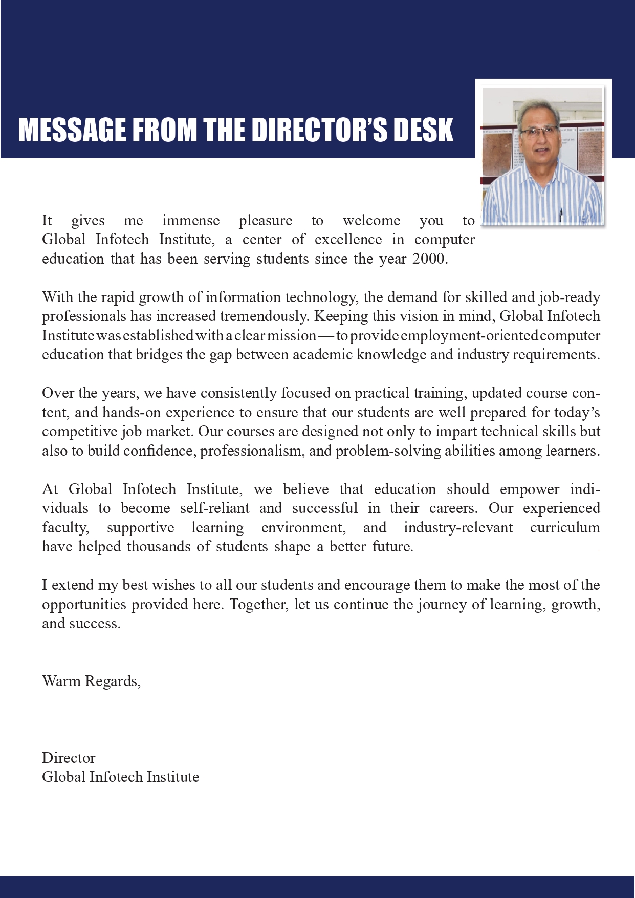 Envision Institutes is an initiative of Shaheed-E-Azam Society For Human Resource Development, a leading charitable Society registered with Government of Delhi under Societies Registration Act, 1860. As the name suggests Shaheed-E-Azam Society identifies itself with the ideals of legendry martyr and great youth icon Shaheed Bhagat Singh. Shaheed-E-Azam Society was formed to empower the youth through value based job oriented education, health awareness and sustainable economic growth.
